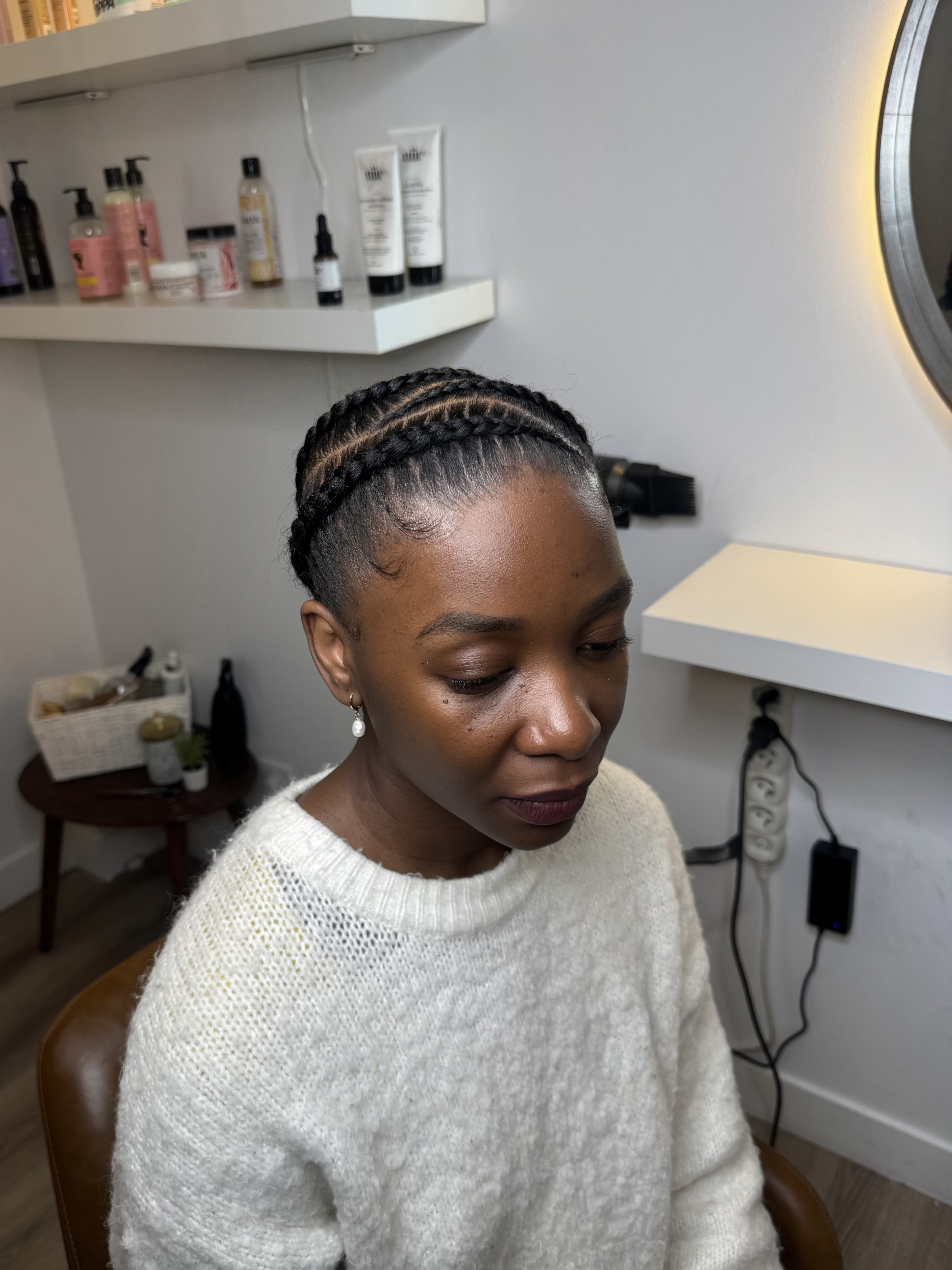 « j’ai fait une coiffure protectrice avec Tracy et je suis bluffée ! Elle a pris le temps de faire un modèle hyper propre, hyper soigné, et en plus elle est HYPER RAPIDE. J’ai eu plein de compliments au boulot et même dans la rue 😅. Les tresses sont légères, faciles à entretenir, et ça tient super bien. »