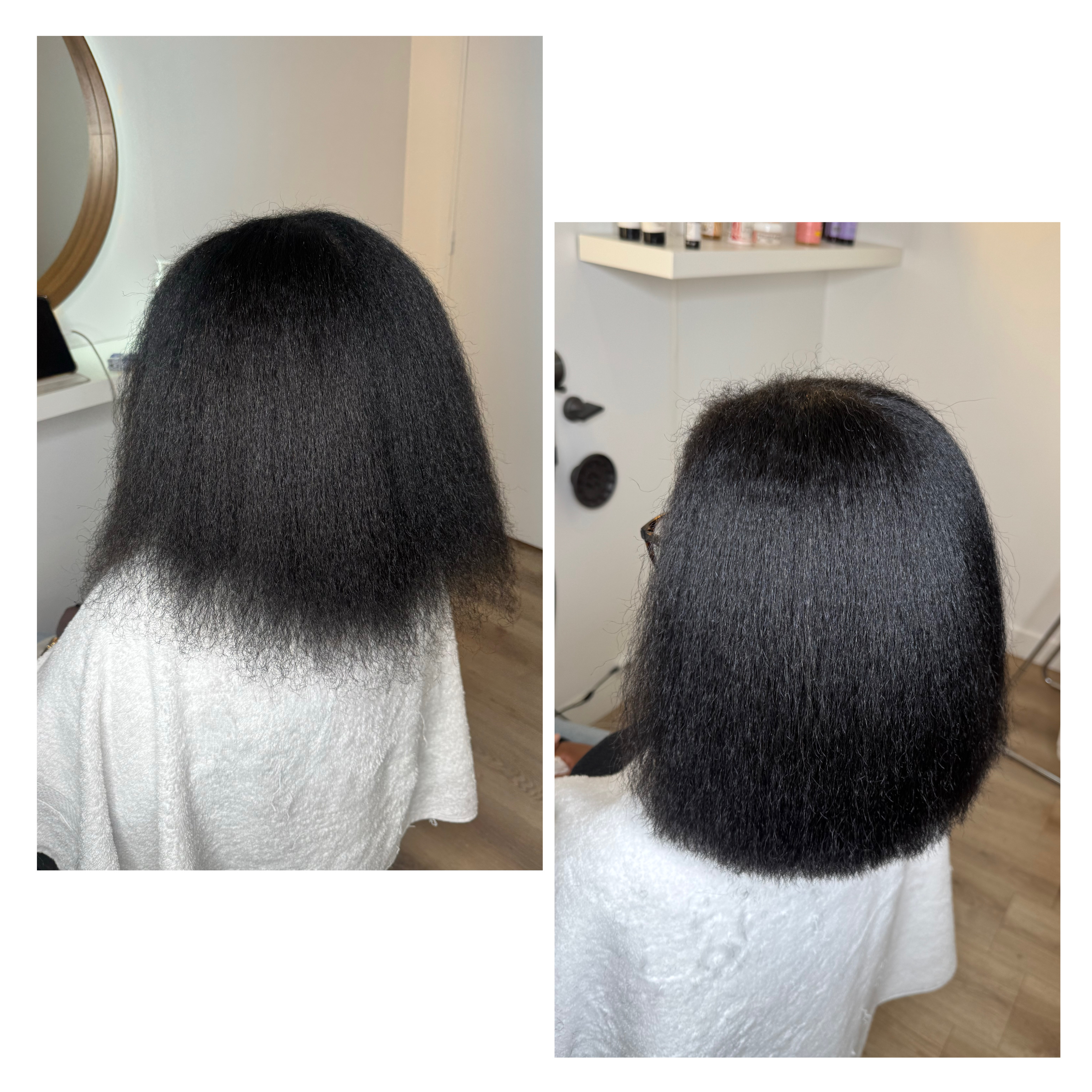 - Un soin profond haut de gamme (Olaplex, K18, Redken ou sur mesure)