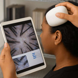 Un tout nouvel outil de diagnostic, il s’agit d’un analyseur de cuir chevelu ultra pointu, avec intelligence artificielle intégrée.